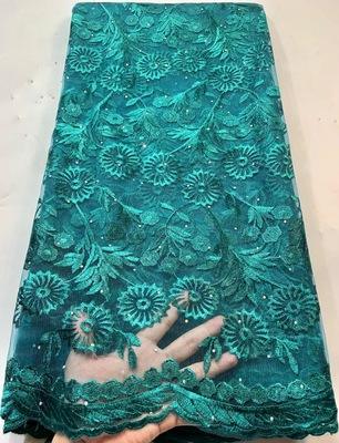 Lazeriu supjaustytas Afrikos poliesterio nėrinių audinys su blizgučiais Nigerijos raišteliais, tinkančiais madingam drabužiams ir dekoravimui