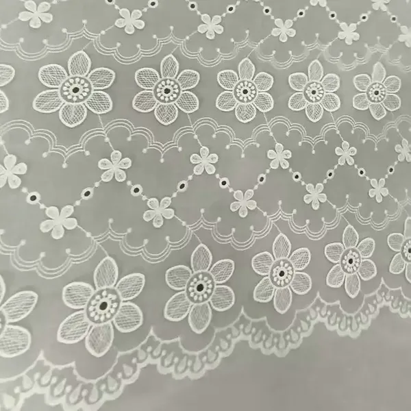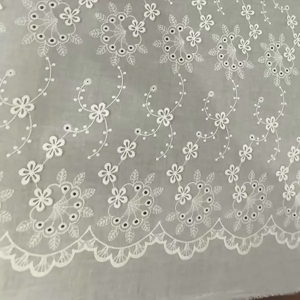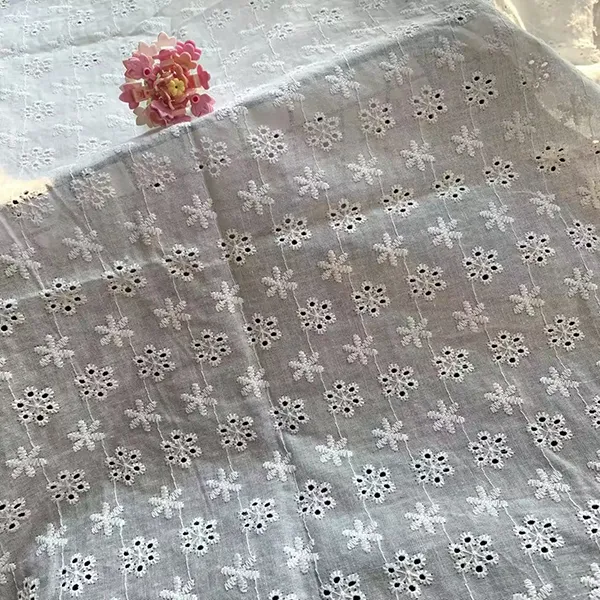 Siuvinėtas medvilninio nėrinių kilpos audinys Šis lengvas, kvėpuojantis medvilninio nėrinių audinys pasižymi subtiliomis kilpos siuvinėjimais, siūlančiais žavų, tekstūruotą dizainą, puikiai tinkantį pavasario ir vasaros madai. Idealiai tinka suknelėms, palaidinėms, užuolaidoms ir amatams, ji sujungia senovinę eleganciją su natūraliu komfortu. ** „OpenWork“ kilpos modeliai ** padidina oro srautą, išlaikant patvarumą. Minkštas, universalus ir lengvai siuvamas šis audinys yra nesenstantis pasirinkimas tiek drabužiams, tiek namų dekorui. Galima įsigyti įvairių spalvų ir pločių, jis puikiai tinka romantiškam, „Boho“ ar „Classic Styles“.