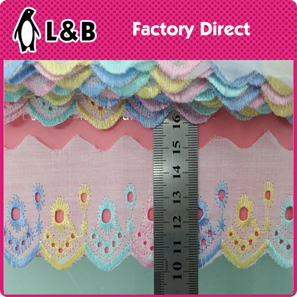 Mados pigios poliesterio baltos vestuvių TC nėrinių apdaila, spalvingi papuošimai TC nėriniai, pagaminti iš TC sumaišytos medžiagos, siūlo didelę kainą ir yra grynos baltos ir daugybės spalvų. Tinka vestuvinėms suknelėms, vakarinėms suknelėms ir namų dekoravimui, minkšta ir plaunama, palaikoma pasirinktinė didmeninė prekyba.