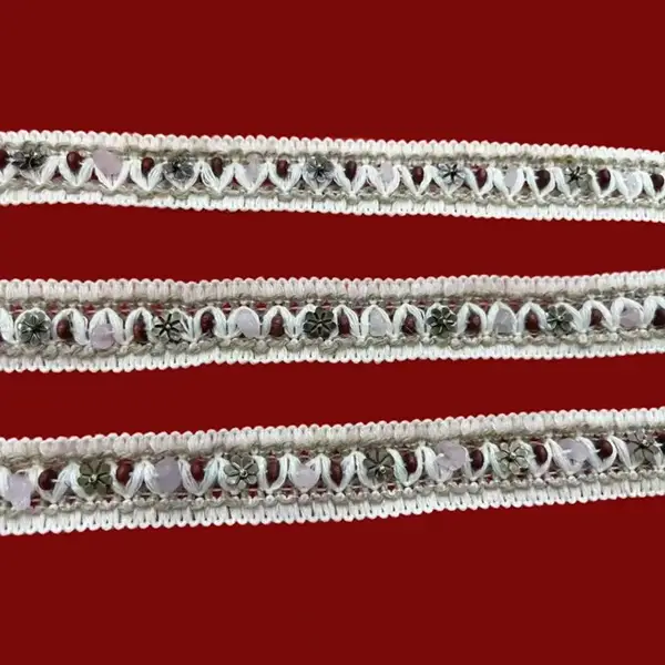 3 cm balto pieno šilko, vandenyje tirpaus poliesterio siuvinėjimo nėrinių apdaila