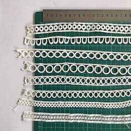 Siauri poliesterio/medvilnės/pieno šilko vandenyje tirpūs nėriniai