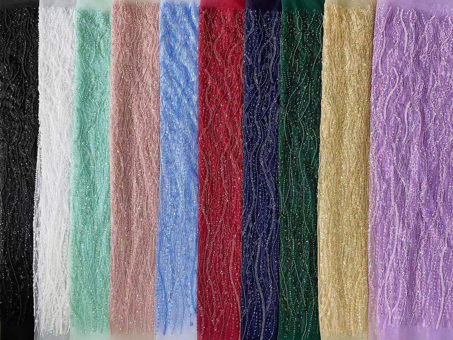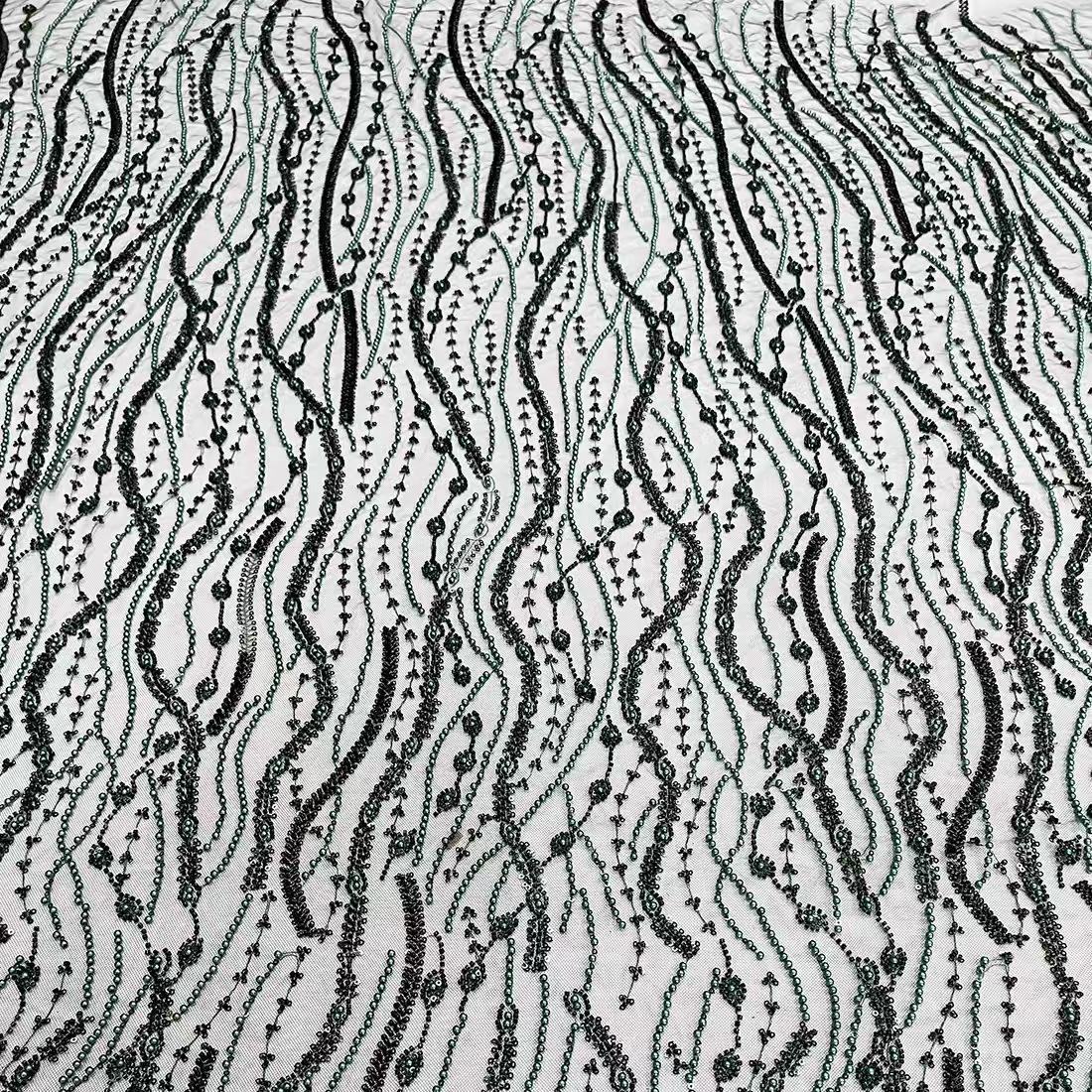 Naujų tinklelių siuvinėjimo karoliukų vamzdžių siuvinėjimo siuvinėjimas Afrikos audinio nėriniai Naujoviška tinklelio pagrindas kartu su trimatėmis karoliukų vamzdžių siuvinėjimu išskiria stiprų afrikietišką etninį skonį. Tinka haute couture, scenos kostiumams ir kultūriniams bei kūrybiniams drabužiams, jis palaiko pasirinktinius modelius ir spalvų derinius, pabrėždami prabangią ir egzotišką tekstūrą.