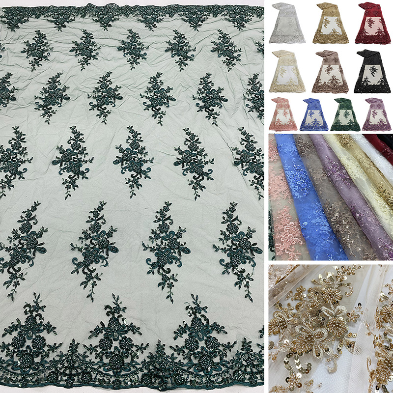 Karoliukų blizgučiai nuotakos nėrinių audinysNaudojant aukštos kokybės nėrinius ar marlę kaip pagrindą, rankomis ar mechaninėmis priemonėmis, skirtomis rutuliukams, kristalams, blizgučiams ir kitiems ant jo pritvirtintoms papuošalams. Gamybos proceso metu amatininkai turi tiksliai suvokti kiekvieno karoliuko padėtį ir kampą, kad užtikrintų viso modelio koordinaciją ir grožį. Šis procesas ne tik išlaiko subtilią tradicinių rankų darbo tekstūrą, bet ir integruoja tikslią šiuolaikinės mašinų valdymą.