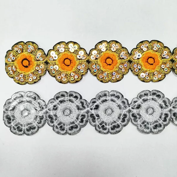 Sequins Drabužių aksesuarų nėriniai, apipjaustyti galiniais klijais, yra dekoratyvinės apdailos rūšis, pasižymintys blizgučiais, nėriniais ir lipniu klijų pagrindu. Tai leidžia lengvai pritvirtinti prie drabužių, aksesuarų ar kitų projektų, nereikalaujant siuvimo. Galite būti tikri, kad nusipirksite blizgučių drabužių aksesuarus nėrinių, apipjaustytų nugaros klijais iš mūsų gamyklos, ir mes jums pasiūlysime geriausią paslaugą po pardavimo ir laiku.