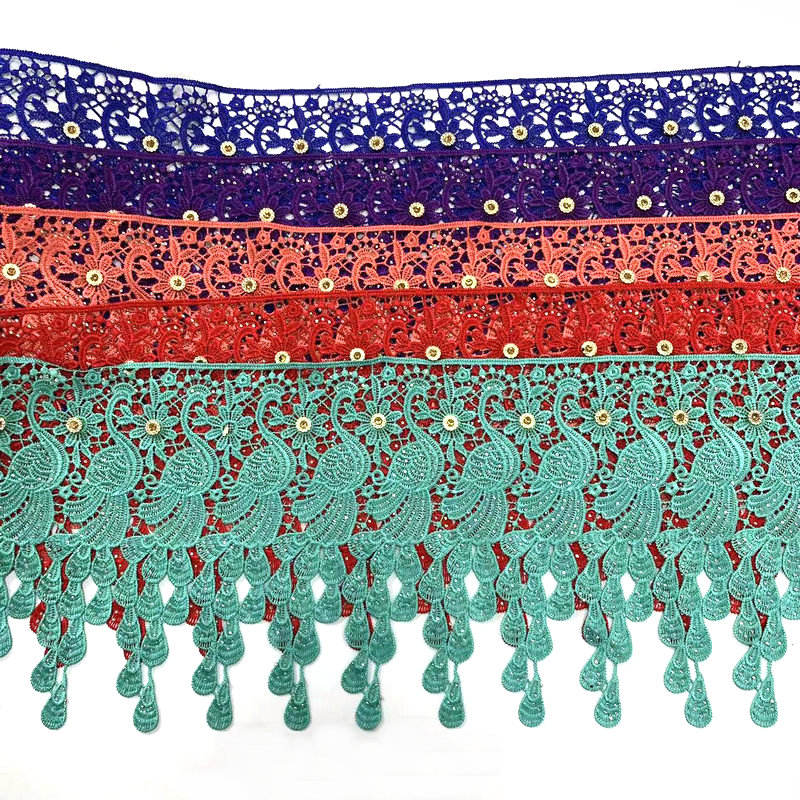 Didmeninis naujausias modelio aukštos kokybės poliesterio pakraščių nėriniai. Jis tinka oficialiam dėvėjimui ir namų dekoravimui. Tiesioginis gamyklos tiekimas su palankiomis kainomis. Pagaminta iš 100% aukštos kokybės poliesterio, „Tassel“ dizainas yra madingas ir dinamiškas, su natūraliu apmušalu ir yra atsparus dėvėjimams bei raukšlėms. Tinka moteriškiems drabužiams, šalikams, namų dekoravimui ir rankdarbiams, jame yra įvairių spalvų ir ilgio variantų.