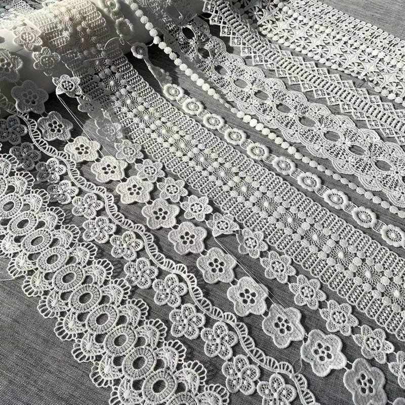 3 cm balto pieno šilko, vandenyje tirpaus poliesterio siuvinėjimo nėrinių apdaila